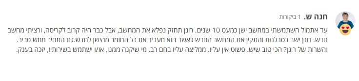 שמי רונן, ואני עוסק כבר יותר מ־20 שנה בשירותי מחשוב, אבטחה וטכנולוגיה – עם דגש על יחס אישי, זמינות מלאה, ועבודה מקצועית מהשיחה הראשונה ועד לסיום העבודה.